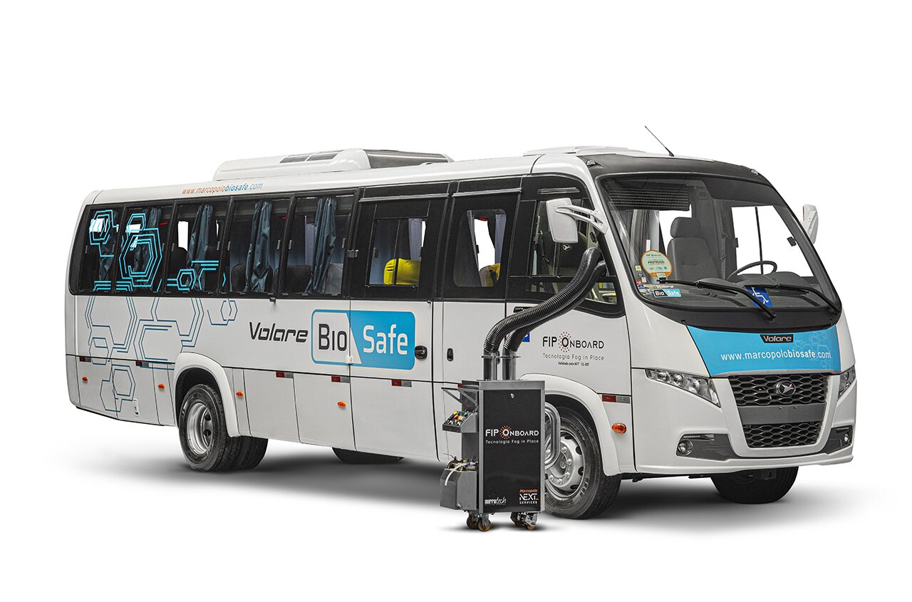 Colocando a segurança de passageiros e motoristas sempre em primeiro lugar, o sistema Fip Onboard atua fazendo uma micronebulização de uma solução saneante, inundando 100% do veículo com volumes de névoa e realizando a desinfecção do ambiente em poucos minutos, antes e depois de cada viagem.