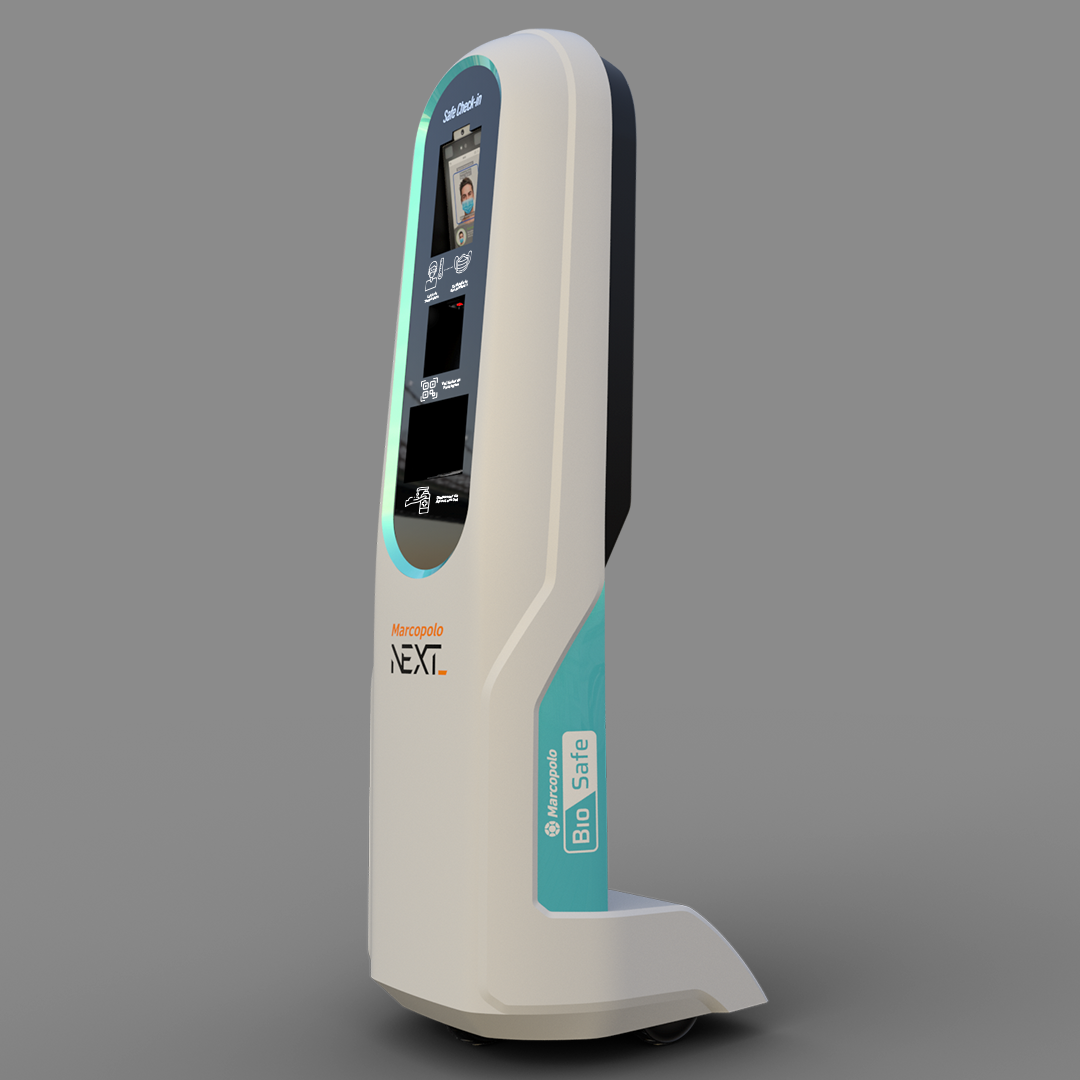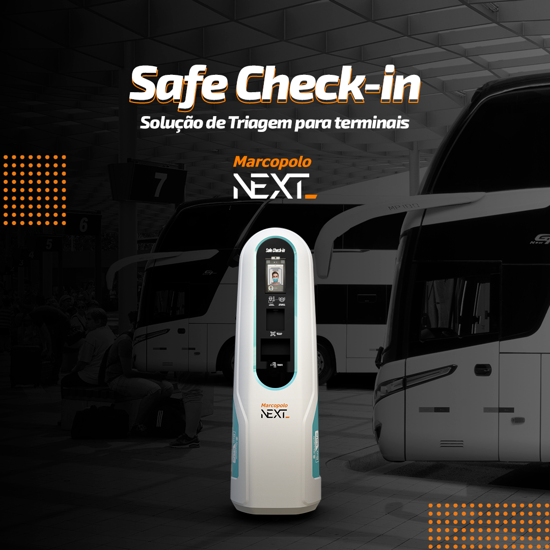 No formato de totem, o Safe Check In é focado na triagem antes do embarque em rodoviárias e aeroportos, oferecendo em um único local dispenser de álcool gel, reconhecimento de temperatura e máscara, e checagem de passagem via QR Code.